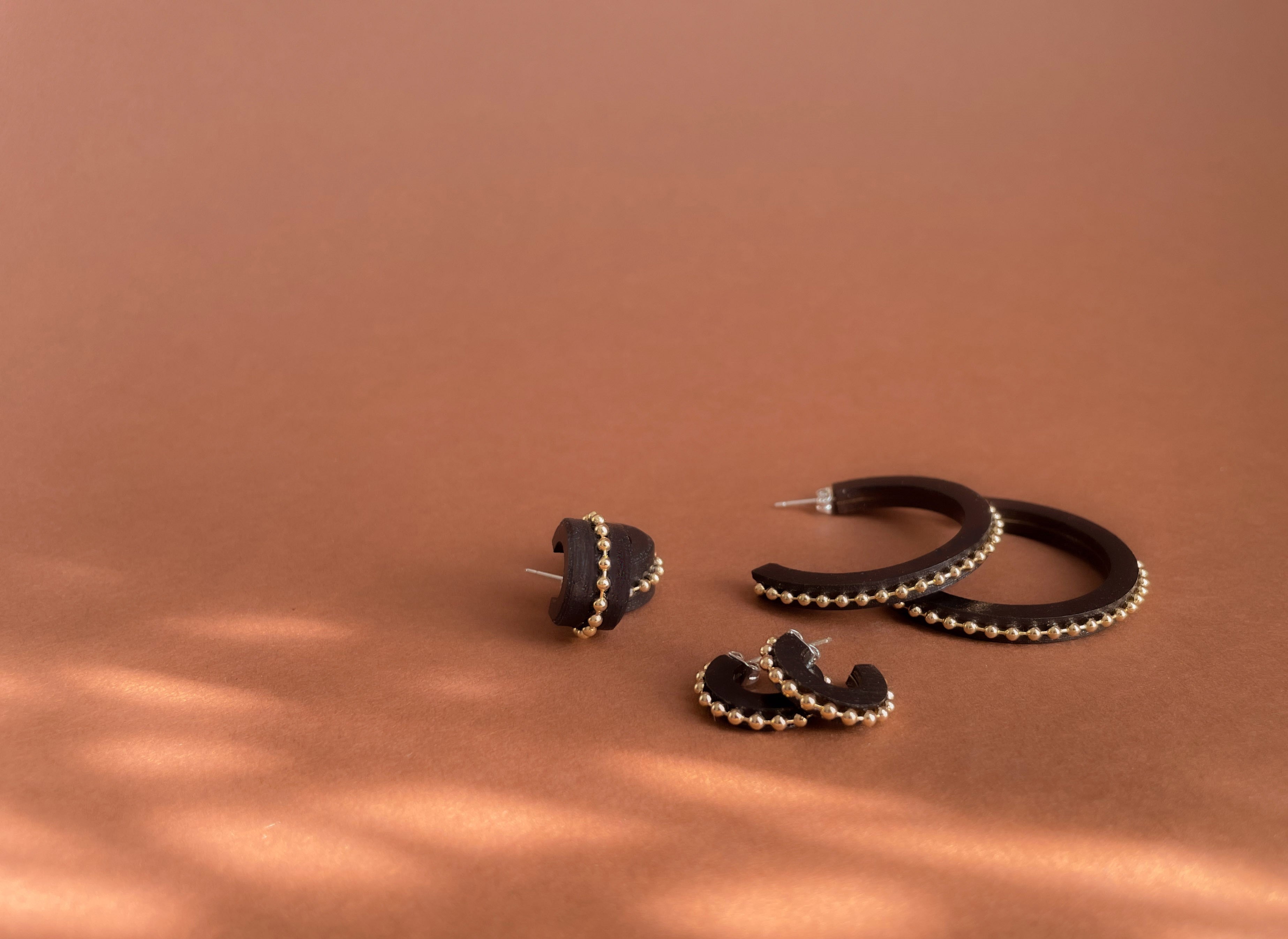 We love hoops. A lot. So we really had to find a way to create them from our favourite material - wood. Luckily we did, and ever since we keep adding to this unique collection of lightweight hoop earrings in various shades and sizes. We hope you come to love them as much as we do...