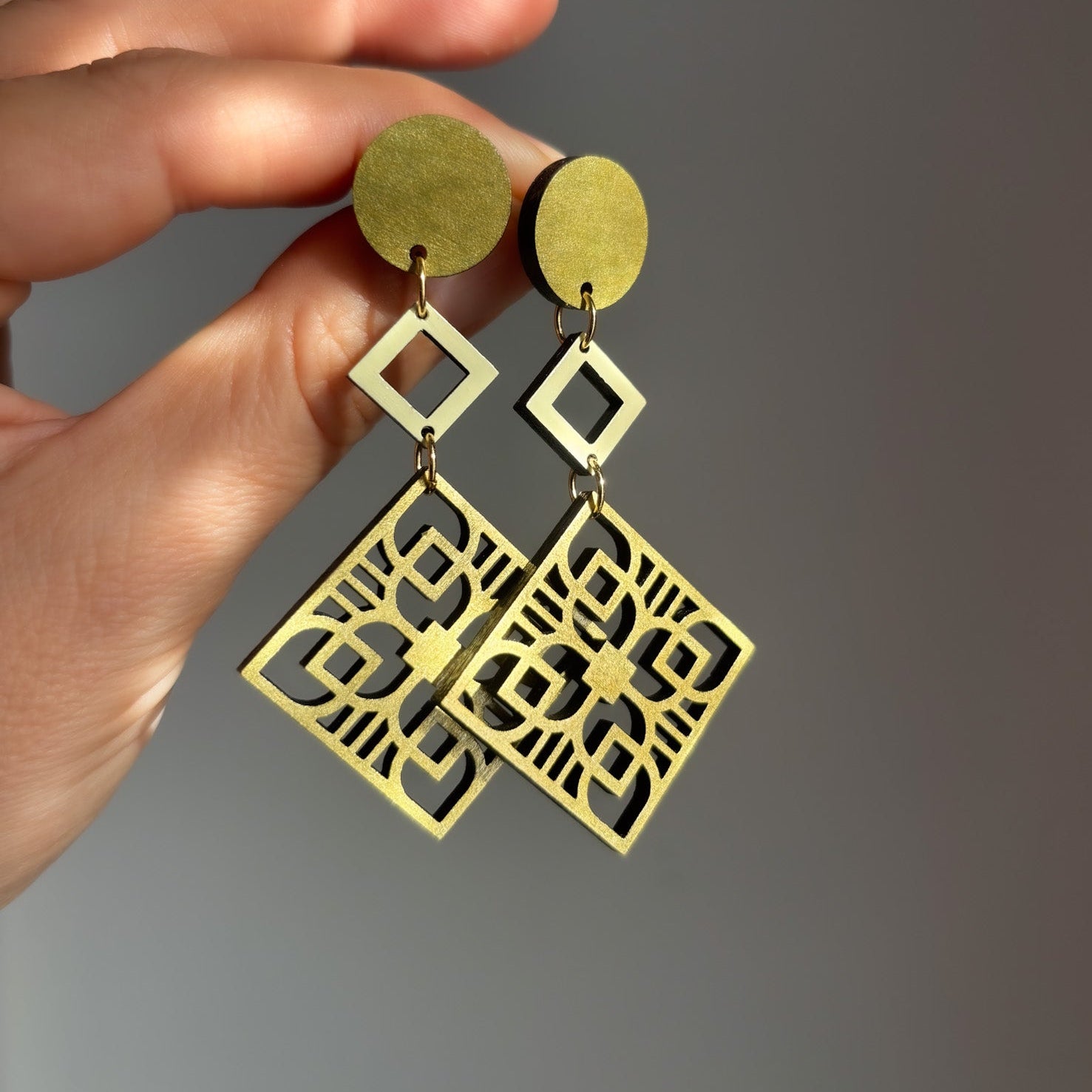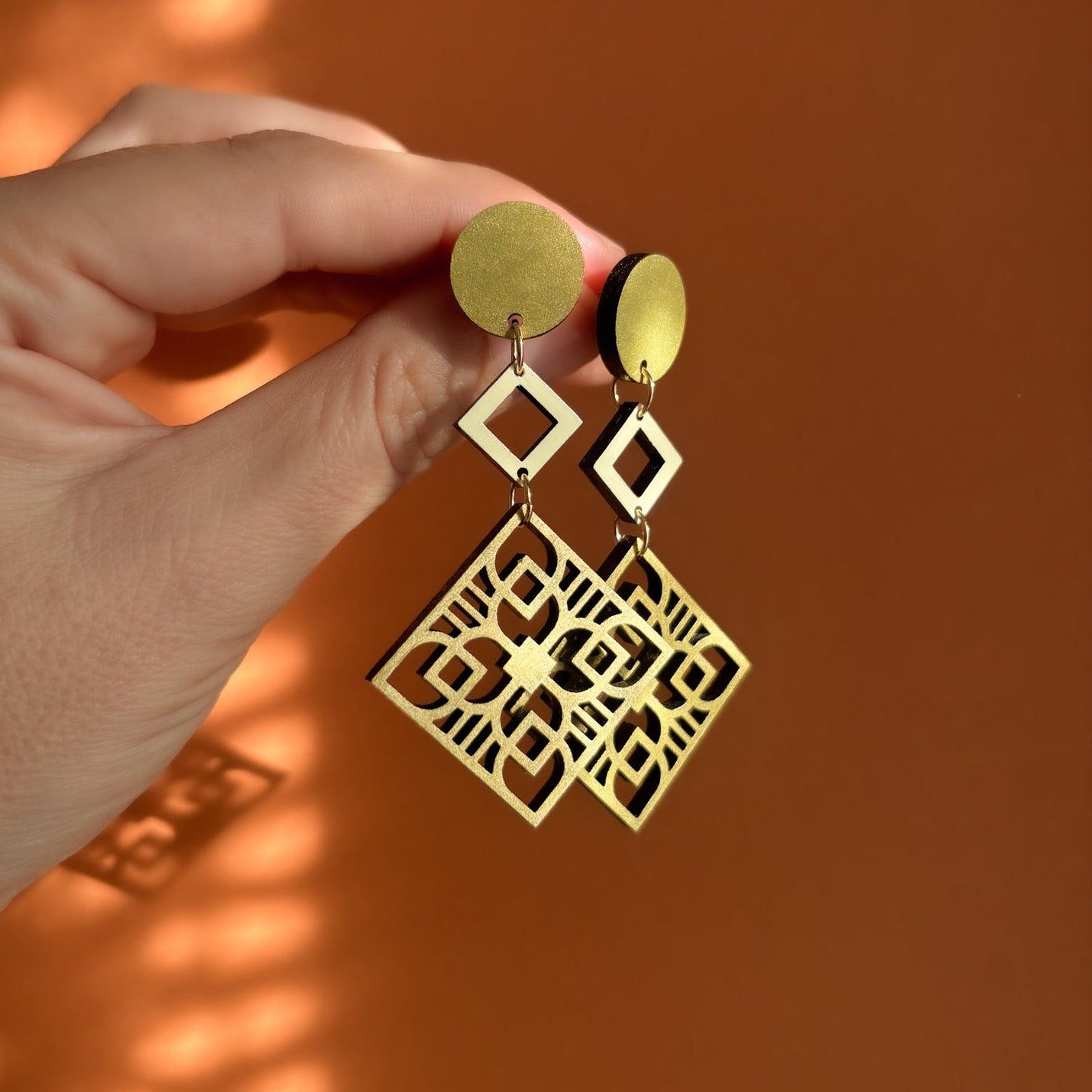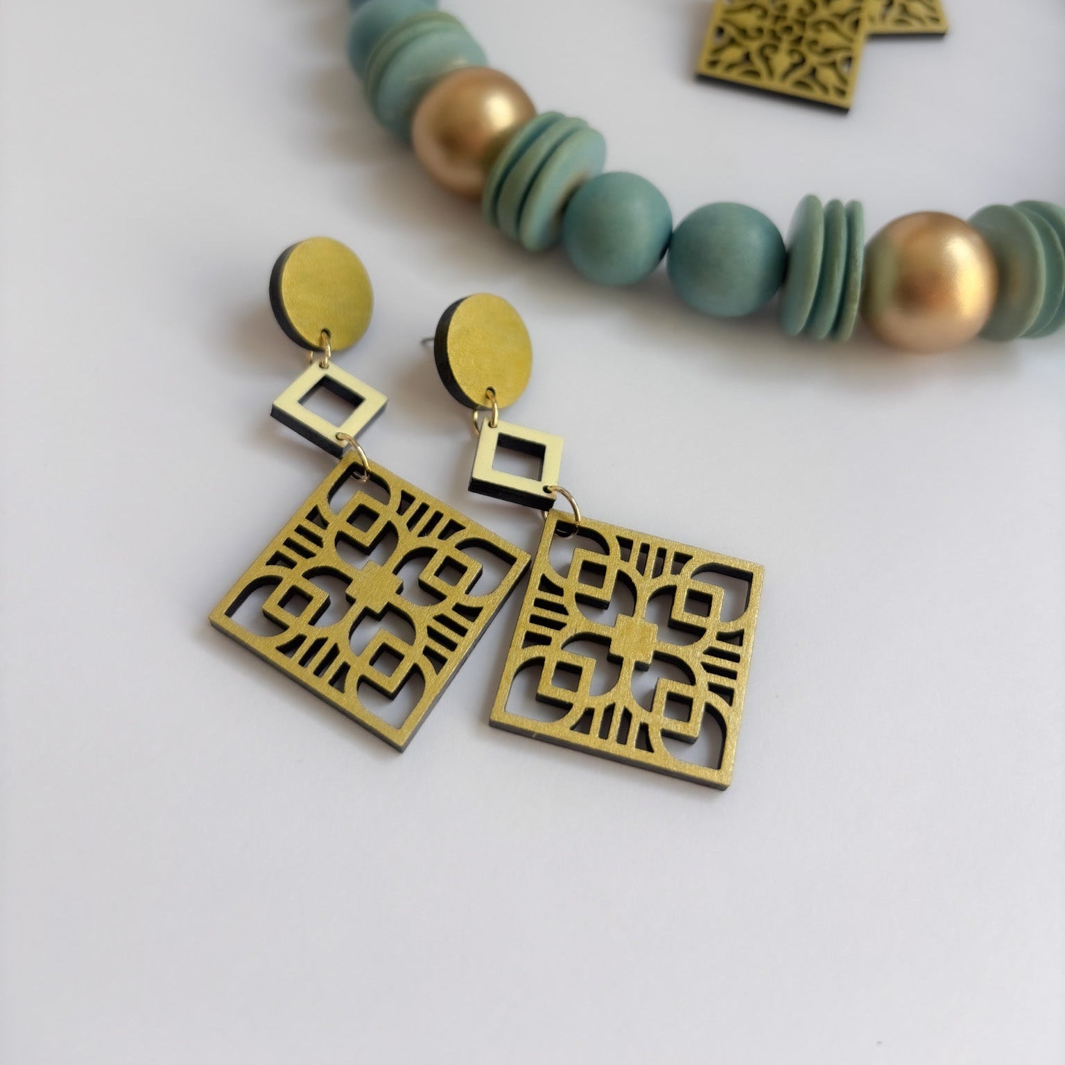 These statement earrings are made from hand-painted wood. The earring pins and closures are made of hypoallergic surgical steel, providing worry-free comfort even for the most sensitive skin.